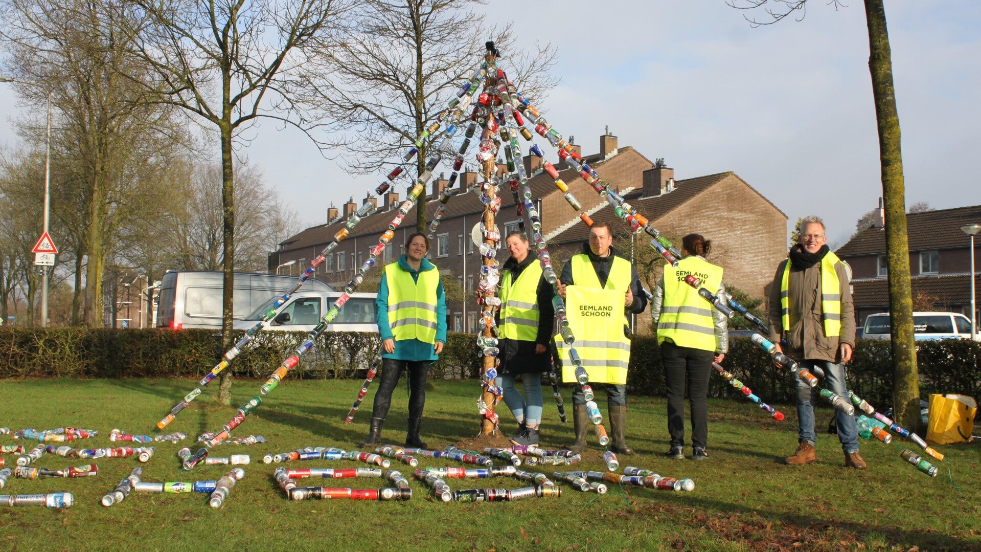 Samen met enthousiaste stadsgenoten van Eemland Schoon maakten we een ludiek statement tegen deze enorme hoeveelheid zwerfafval in de stad: een vier meter hoge blikjesboom. De boom stond bij Winkelcentrum Schothorst en bestond uit ruim 200 van de ongeveer 700 gevonden blikjes.